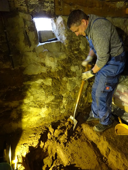 Durch einige Hochwasser und Lagerung von Kartoffeln und anderen Lebensmitteln im Keller, scheinen über die Jahrhunderte noch einige Zentimeter Erde hinzugekommen zu sein.