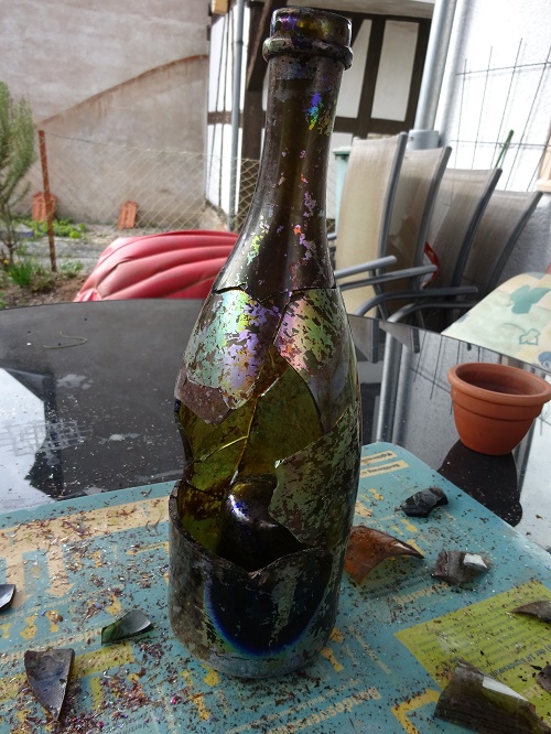 Bei dieser Ausgrabung wurde noch eine alte zerbrochene Sekt / Weinflasche gefunden. Das Glas ist am Boden über einen Zentimeter dick. Eine grobe Altersschätzung steht noch aus.