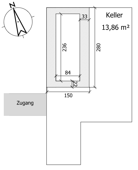 Ein nachträglicher Einbau dieser großen Umrandungssteine ist bei der Enge des Kellereinganges schwer vorstellbar.