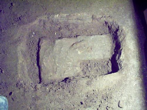 Dabei wurden die ca. 30cm breiten Steine der langen Seite und die ca. 20cm breiten Steine der kurzen Seite freigelegt.